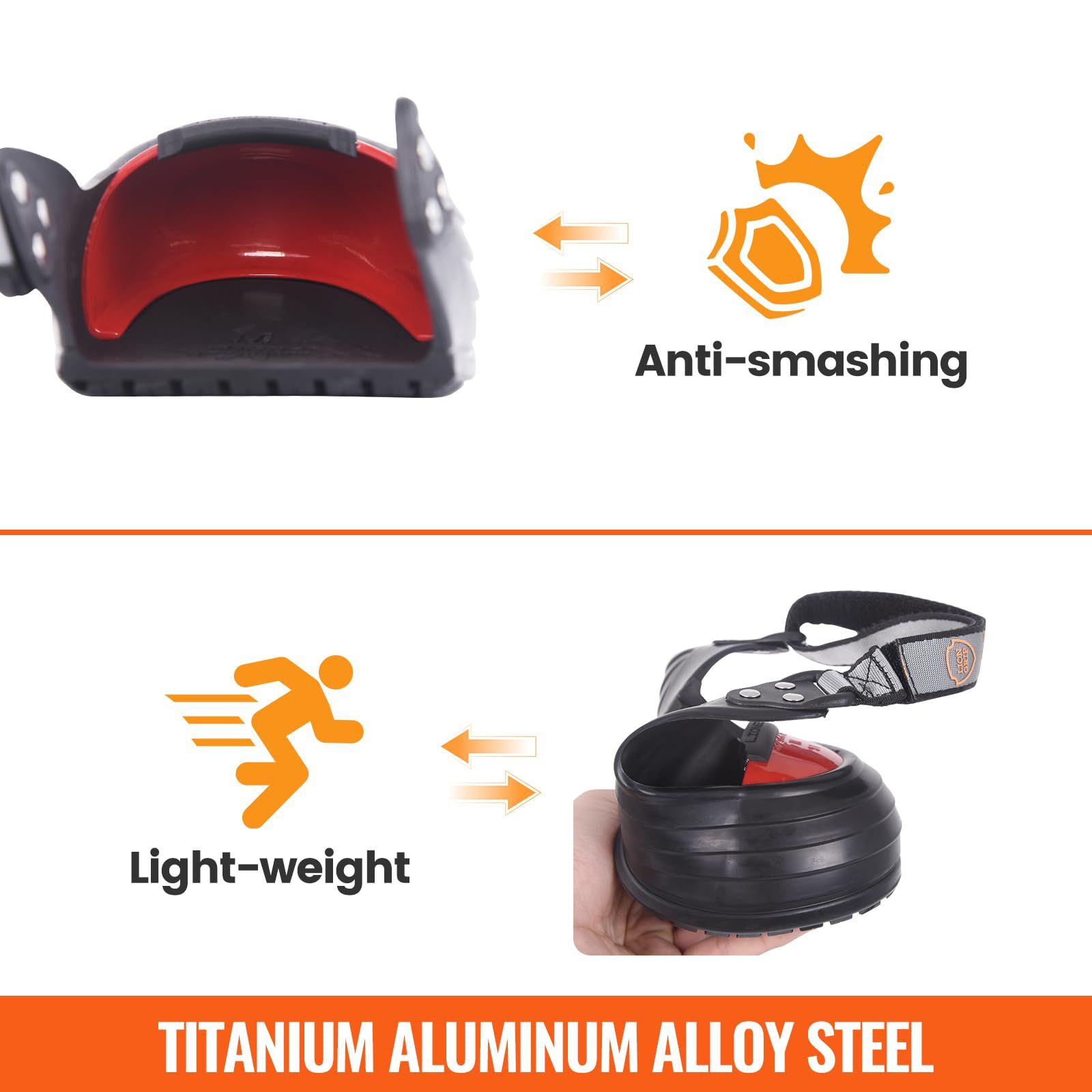 [Sturdy Safety Overshoes] Our steel toe covers for shoes are made of titanium aluminum alloy steel toe caps under European safety standards for anti-smashing, and non-slip rubber for double safety. [Adjustable Double Strap] These safety overshoes feature an upgraded double strap design for better fitting. The strap on the back of the foot helps balance the weight on the foot, making it great for walking. The double strap of the steel toe caps can be adjusted to better suit different shoes and is super convenient and stable. [Flexible Fitting] There are 3 sizes for these steel toe caps for shoes, and different sizes have different colors for easy recognition. Size S (Blue) is for US women 4–7.5, Size M (Red) is for US men 5.5–9.5, and Size XL (Green) is for US men 9.3–13+. Note: One bigger size is advised when your normal shoe size is the same as the maximum limit of the safety overshoe. [Wide Applications for Safety] With 3 universal sizes and an adjustable double strap, this steel toe inserts shoes to fit various shoe types, like work boots, sneakers, high heels, etc. No more slipping or smashing—great for visitors, workers, management, clerical staff, sales,etc. [Included Storage Bag] The steel safety shoes come with storage bags for easy storage. You can put the safety overshoes in the bag when not needed, away from dust and save space.